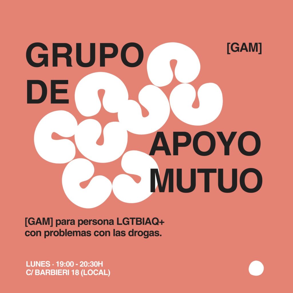 ¿Crees que tienes un problema con las drogas? ¿Te cuestionas tu consumo? ¿Te preocupa que tus relaciones afectivosexuales se den únicamente cuando están mediadas por las drogas? Si eres una persona LGTBIAQ+ y te haces preguntas de este tipo, quizá te apetezca participar en este Grupo de Apoyo Mutuo [GAM].